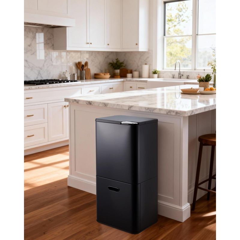 16 Gal Kitchen Trash Can, Dual Compartment Recycling Bin with Food Waste Caddy, Stainless Steel Trash & Recycle Bin Combo