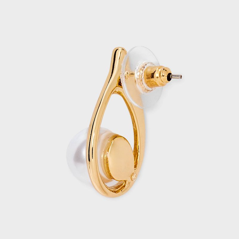 Elegant Pearl Drop Earrings - A New Day™ Pearl/Gold: Nickel-Free Metal, Post Closure, 0.99" Length, 0.67" Width
