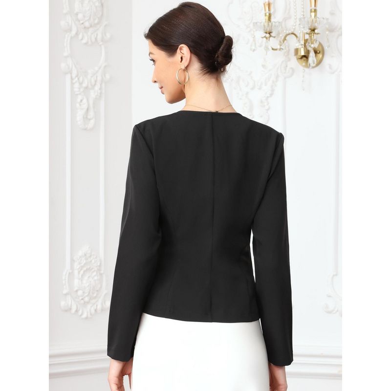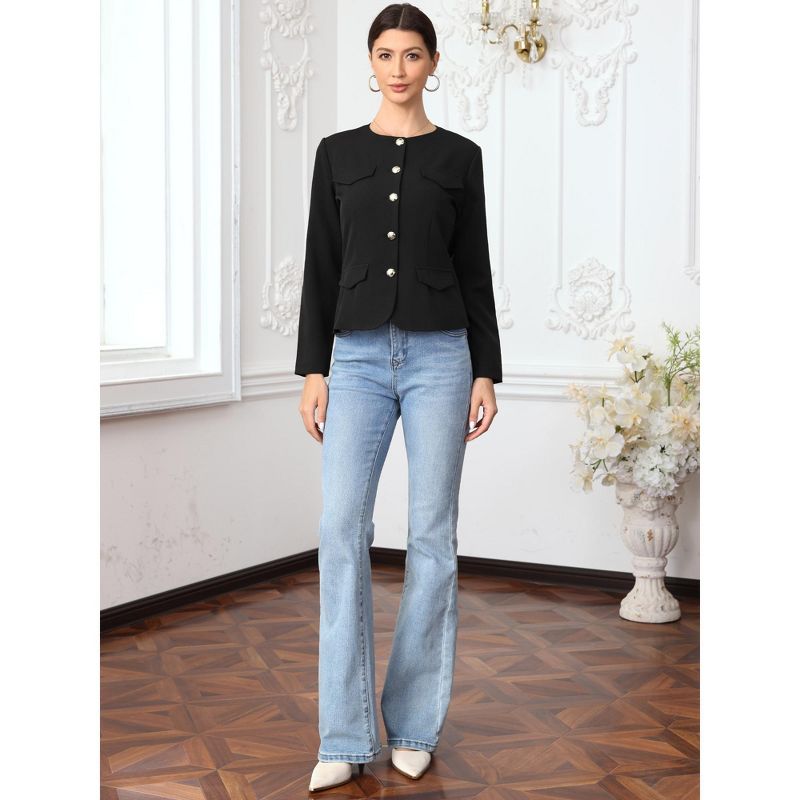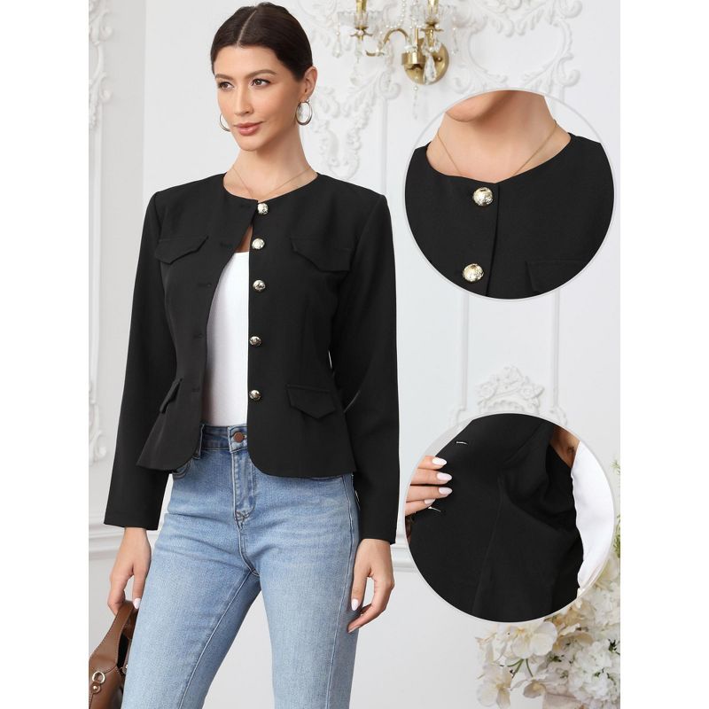 INSPIRE CHIC Women's Business Casual Crew Neck Button Down Fitted Long Sleeve Office Blazer Medium Black