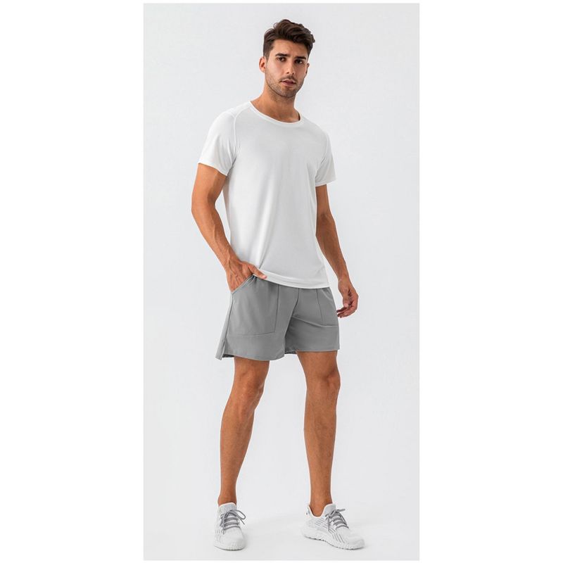 Clearlove Men's Workout Shorts 7" Inch Free Movement Side Slit Running Short Lightweight Athletic Shorts with Pockets No Liner, Cloudy gray - Large