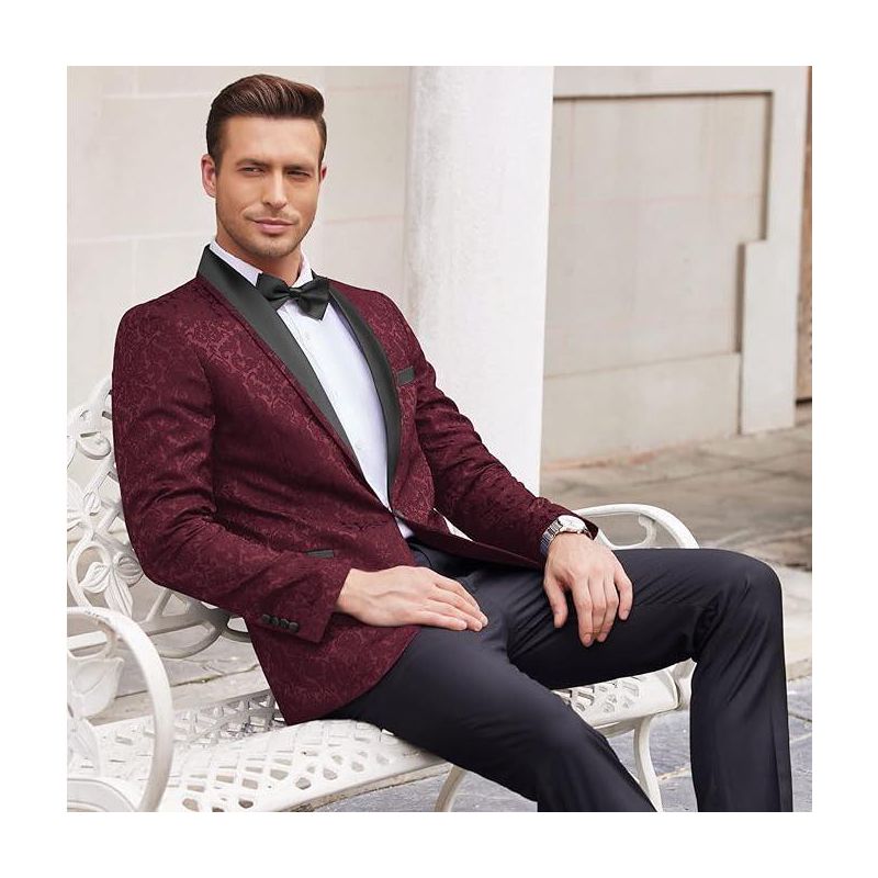 COOFANDY Men's Floral Tuxedo Suit Jacket Slim Fit Dinner Jacket Party Prom Wedding Blazer Jackets Red M