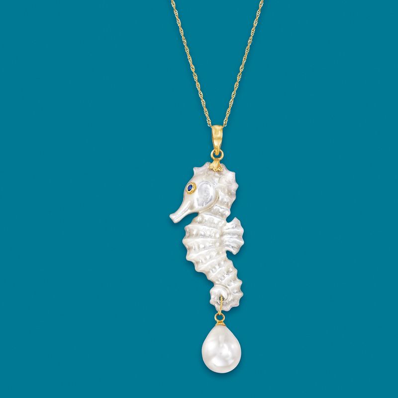 Ross-Simons Mother-Of-Pearl Seahorse Pendant With 9mm Cultured Pearl in 14kt Yellow Gold Size 2.38