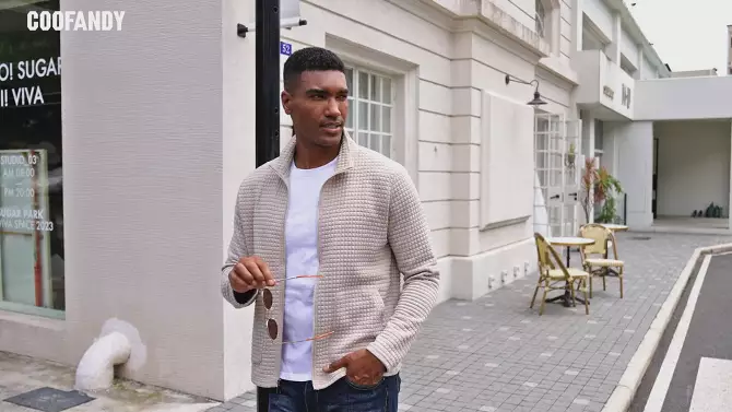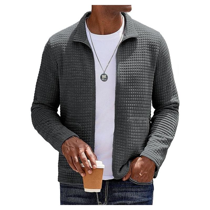 COOFANDY Men's Lightweight Varsity Jacket Casual Bomber Jackets Waffle Zip Up Coat with Pocket Navy Blue M