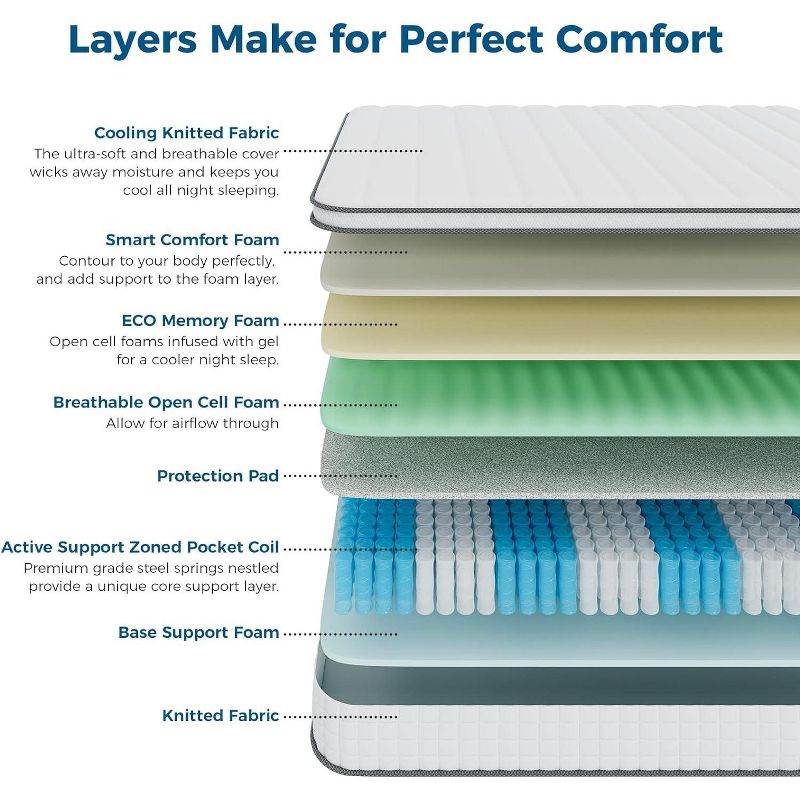ELJGET Twin XL Mattress, 10" Mixed Memory Foam Mattress, Bagged Spring, Medium Firm Feel and Motion Isolation