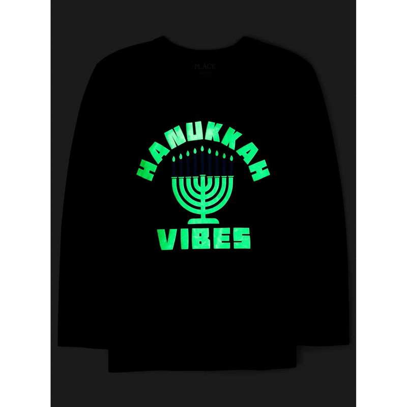 The Children's Place Boys Long Sleeve Glow Hanukkah Vibes Graphic Tee Blue M (7/8)