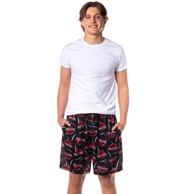 Intimo Jurassic Park Pajamas Men's Allover Claw Tear Logo Design Sleep Shorts (XL) Black