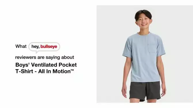 Boys' Ventilated Pocket T-Shirt - All In Motion™ Light Blue XS: Recycled Polyester, Spandex, Moisture Wicking, Quick Drying