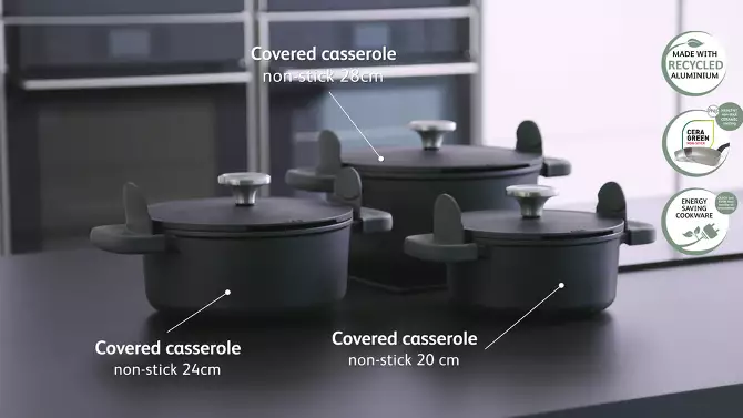 BergHOFF Phantom 6Pc Nonstick Ceramic Cookware Set with Lids, Recycled Cast Aluminum