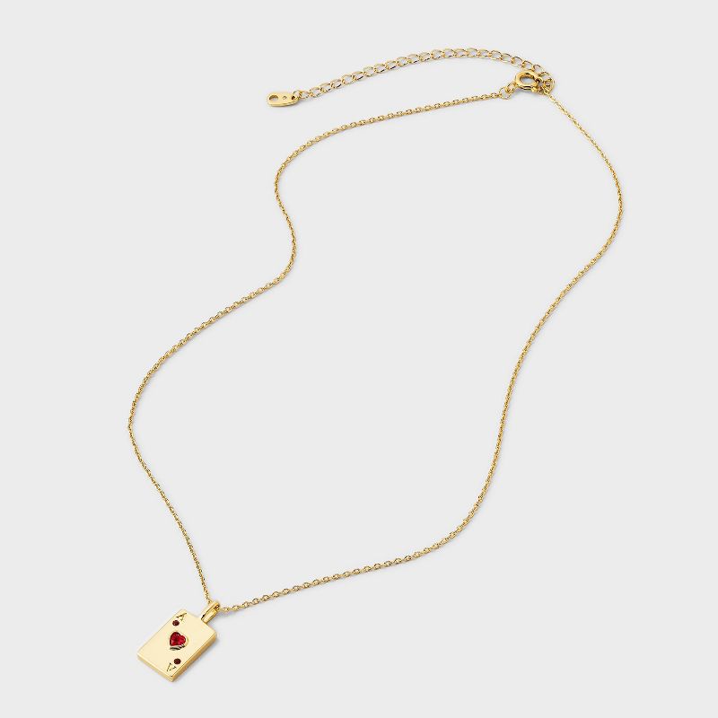 14K Gold Dipped Cubic Zirconia Valentines Ace of Hearts Pendant Necklace - A New Day™ Gold/Red