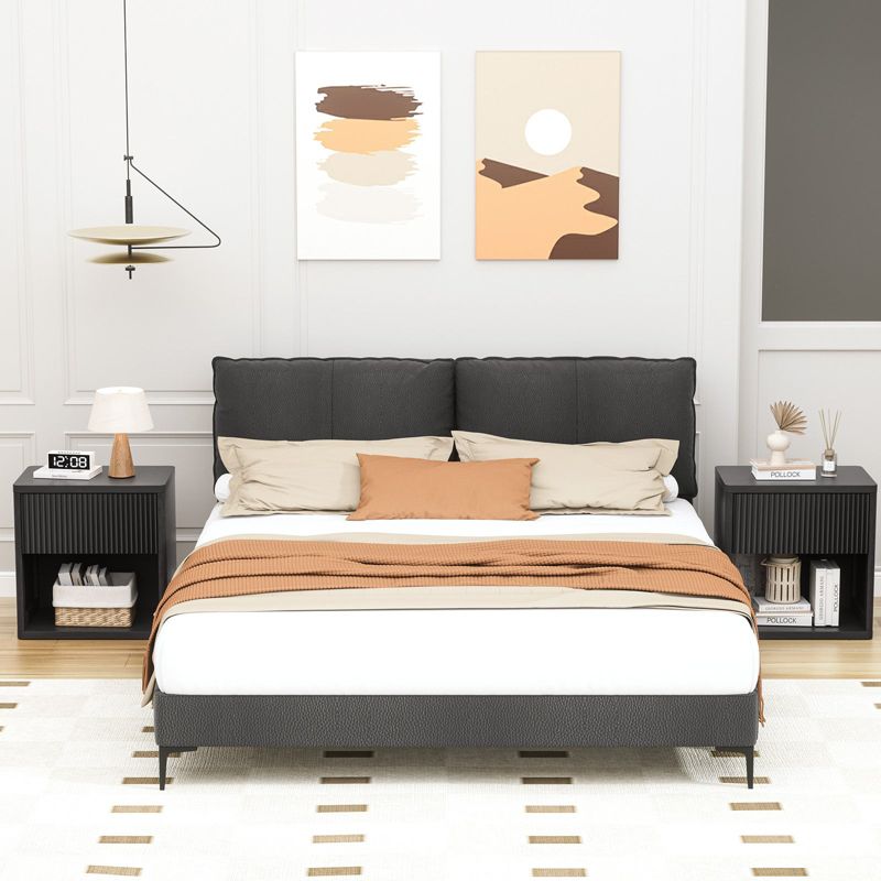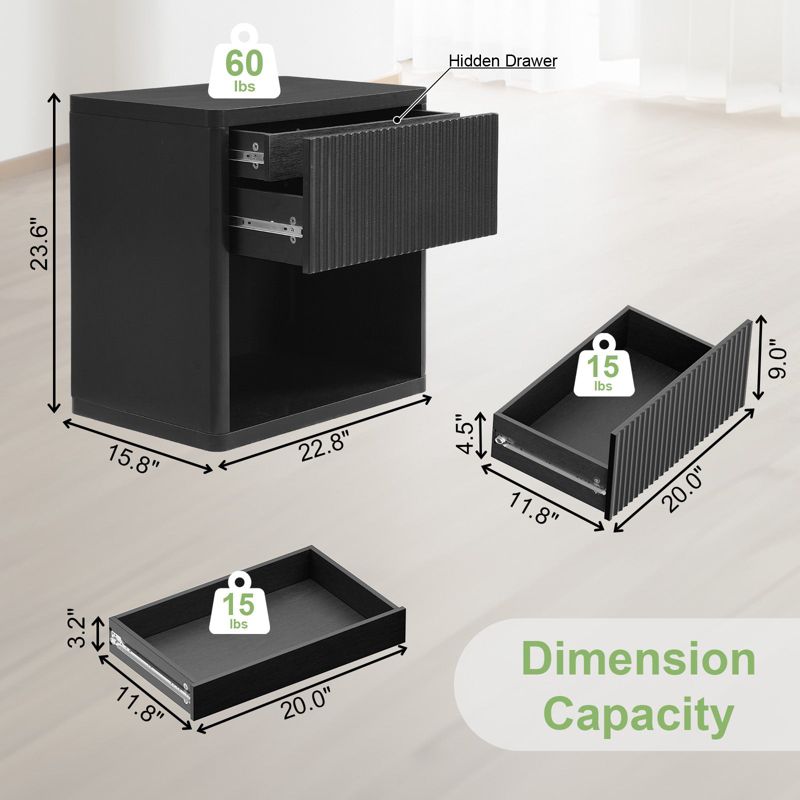 Brafabhome Fluted Nightstand Set of 2 with Drawers, Modern Bedside Table with Hidden Drawer, Accent End Table with Open Shelf, Curved Profile | Black
