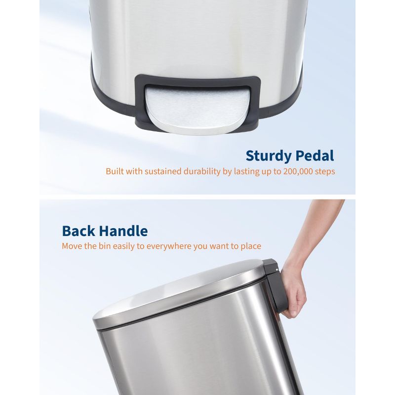 13 Gallon Stainless Steel Trash Can,Indoor Recycling Bin with Removable Bucket & Soft-Close Step Pedal
