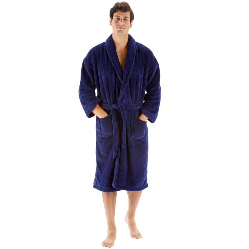 BC BARE COTTON Mens Shawl Robe Microfiber Plush Fleece Bathrobe - Gray - Small