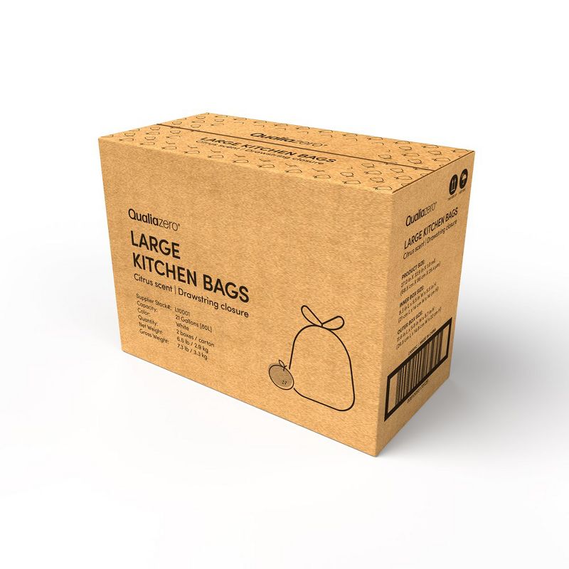 QUALIAZERO 21 GAL / 80L TRASH BAGS, CITRUS SCENTED, 90 COUNT