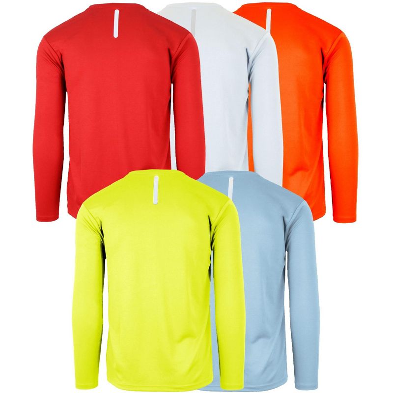 Galaxy By Harvic Men's Long Sleeve Moisture-Wicking Quick Dry Performance Crew Neck Tee- 5 Pack