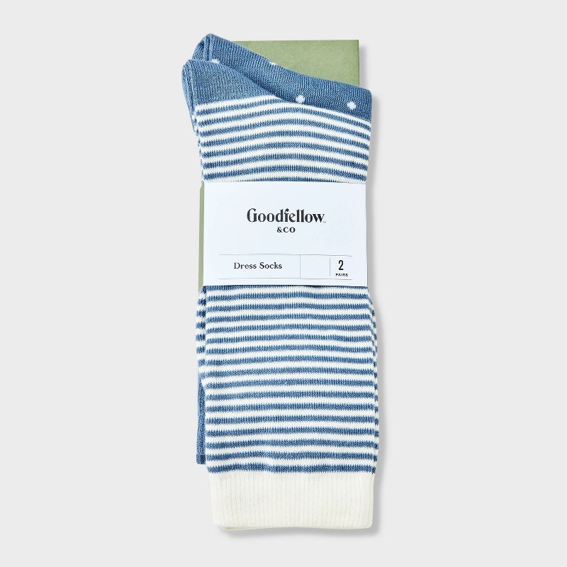 Men's 2pk Casual Crew Socks - Goodfellow & Co™ Blue 6-12
