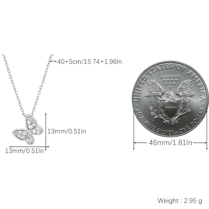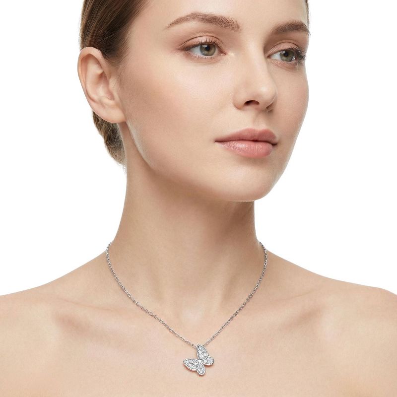 Women’s Modern Silver-Tone Alloy Butterfly Pendant Necklace - Paved CZ Accents, Dainty Cable Chain, Stylish Daily Jewelry