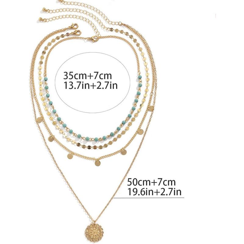 Women Bohemian Coin Pendant Necklace Gold Layered Turquoise Multi Strand Boho Long Necklace Jewelry