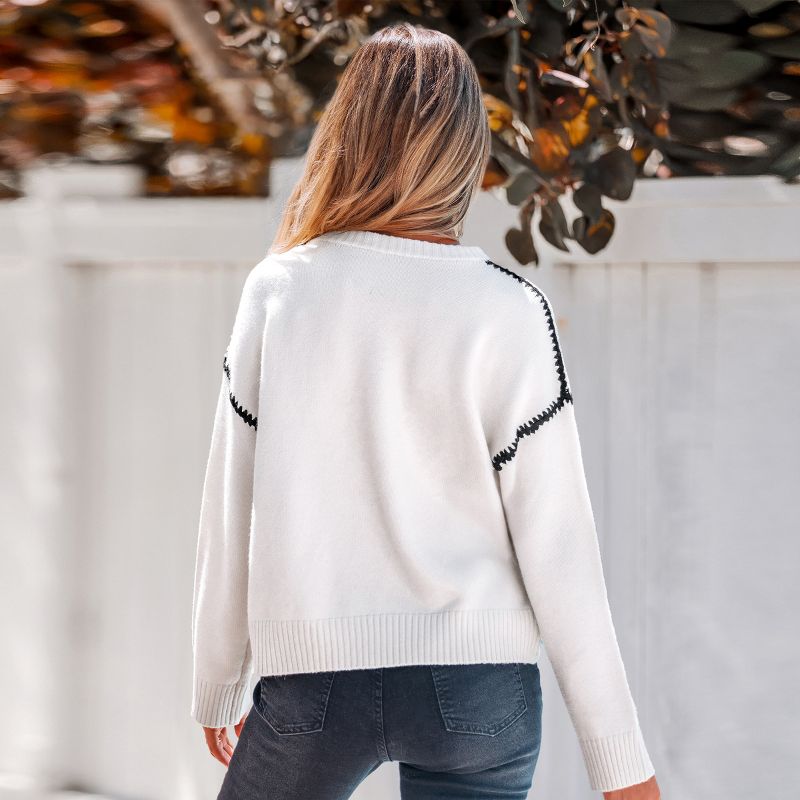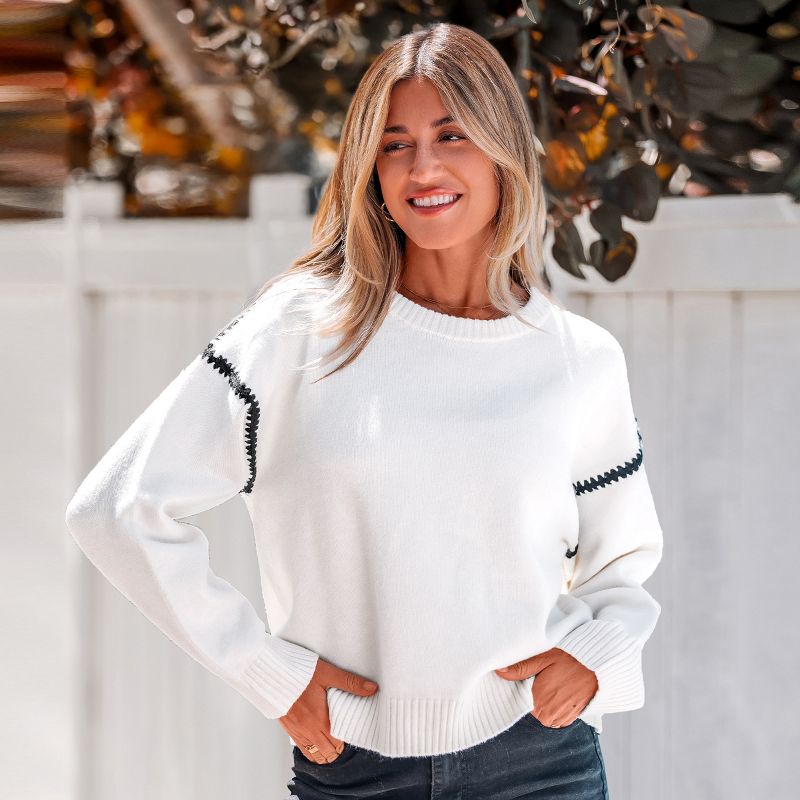 Women's Chic White Knit Sweater with Zigzag Stripes - Cupshe-M-White