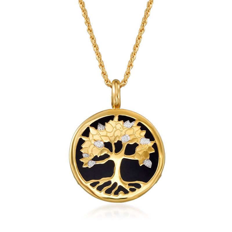Ross-Simons Black Onyx Tree Of Life Pendant in 14kt Yellow Gold Size 0.88
