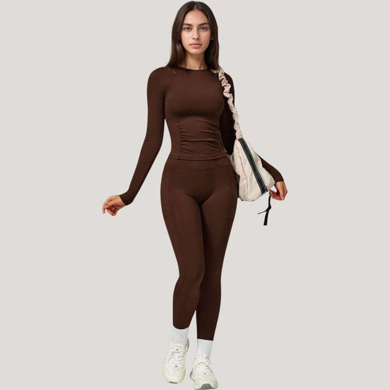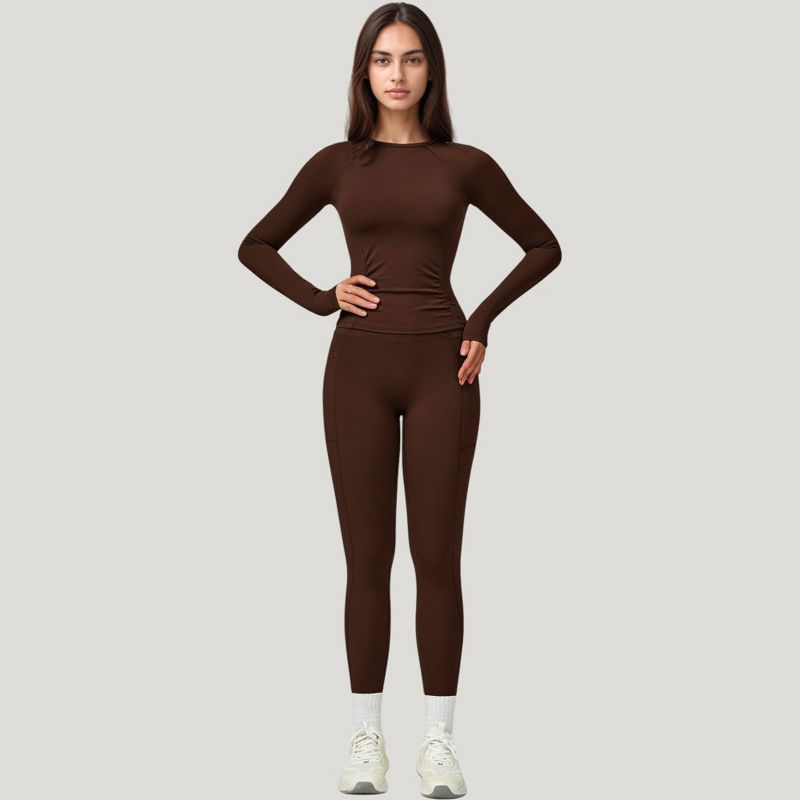 Anna-Kaci Active Women's Long Sleeve Crew Neck Activewear Top with Streamlined Fit and Lightweight Stretch Performance Fabric - Medium, Brown