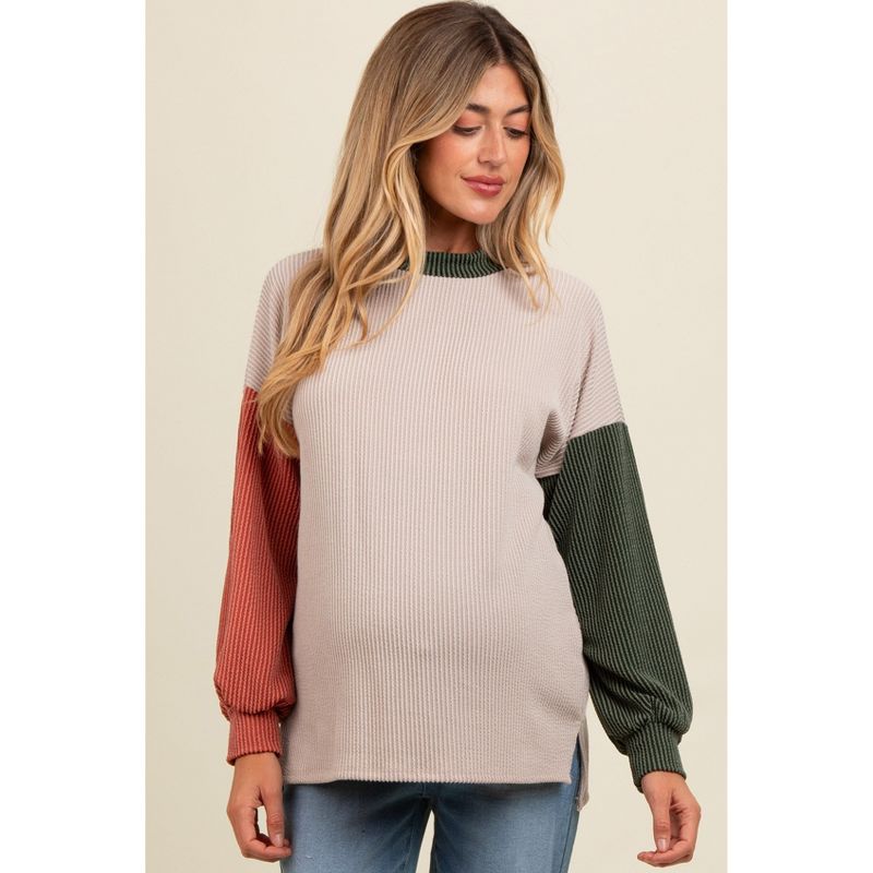 Pinkblush Cream Ribbed Colorblock Maternity Side Slit Top XL