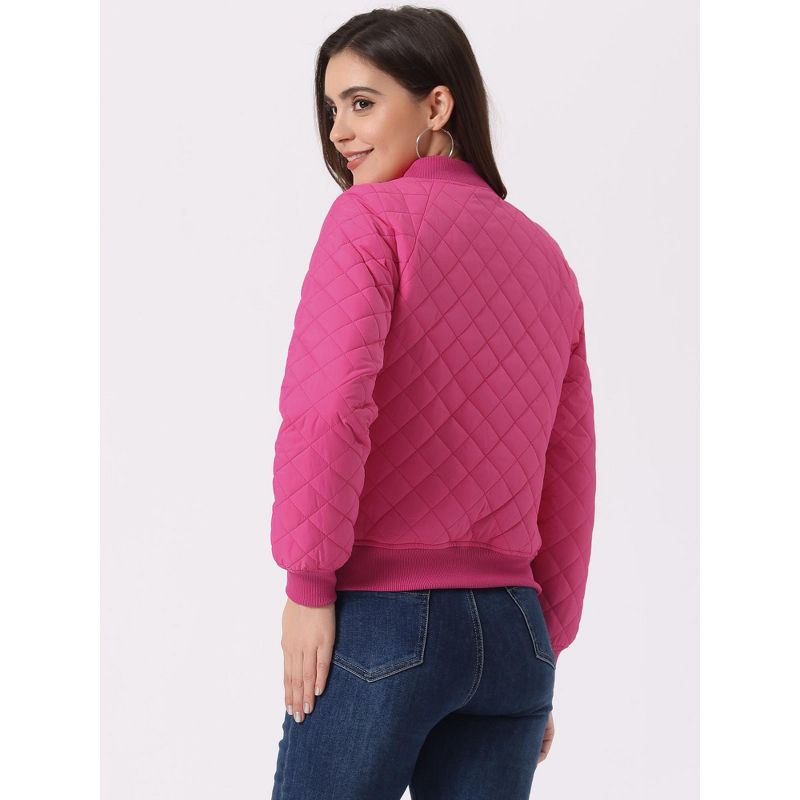 INSPIRE CHIC Women's Quilted Zip-Up Raglan Sleeves Bomber Jacket Hot Pink Medium