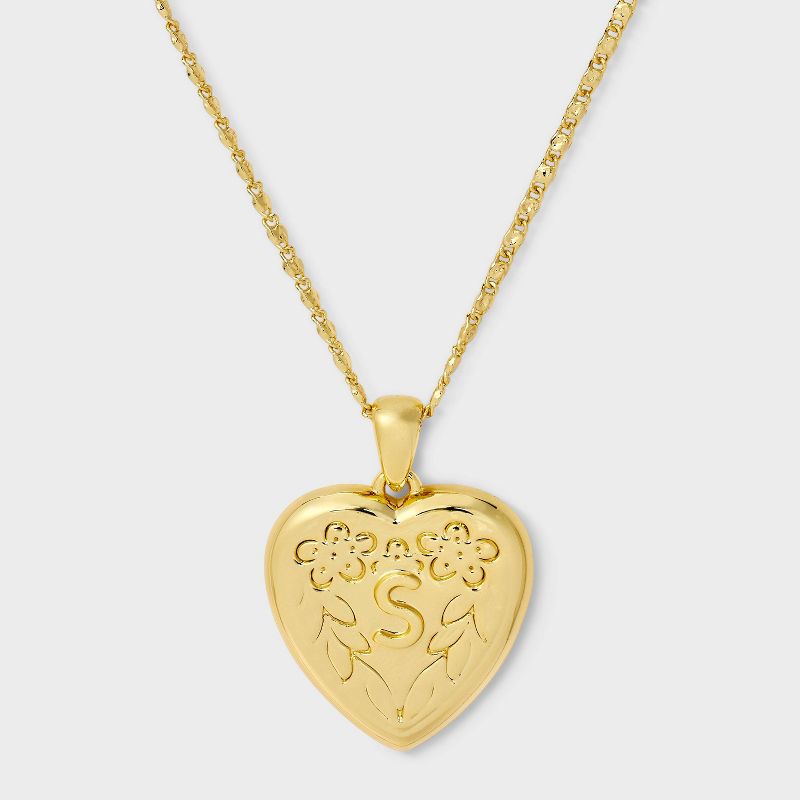 14K Gold Dipped Valentines Heart Charm S Initial Necklace - A New Day™ Gold
