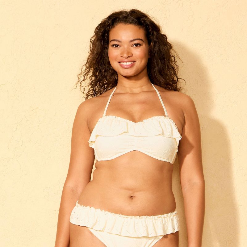 Women's Daisy Eyelet Ruffle Bandeau Bikini Top - Wild Fable™ Cream M