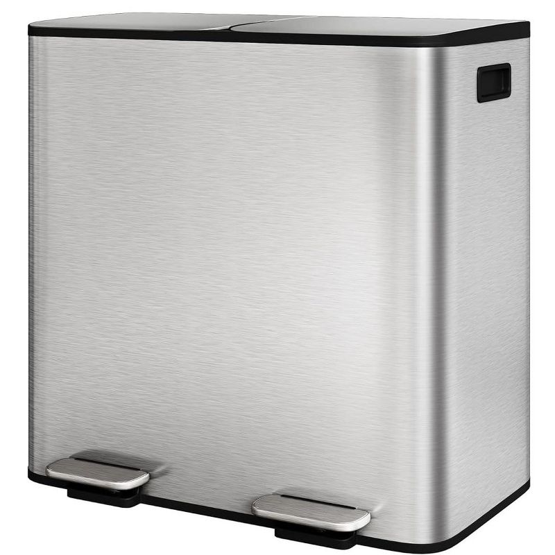Acekool 2-Pack 40L Soft-Close Dual Trash and Recycle Bin Combo with Smudge-Resistant Stainless Steel, Step-On Kitchen Garbage Cans